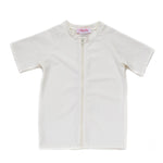 Clean and pure lines for our classic yet versatile ALEX short sleeve rashguard in ivory.