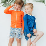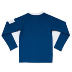 Traditional yet playful, our LEONARDO rashguard in cobalt blue and ivory is a great way to protect your children from the sun harmful rays while keeping them looking stylish. The practical no-pinch flap and the multicolour full length zip are elegant and fun, while its super soft and certified UPF50+ fabric is made from reclaimed fishnet in order to impact as little as possible on the environment without compromising on quality.