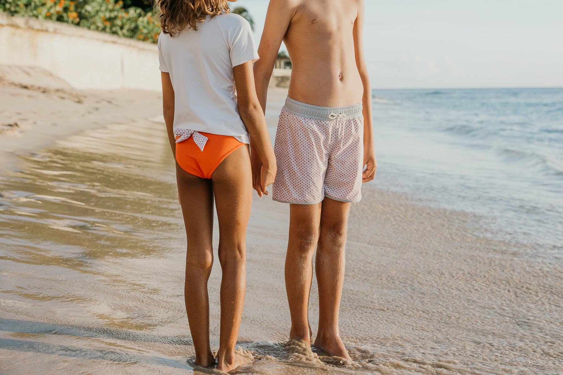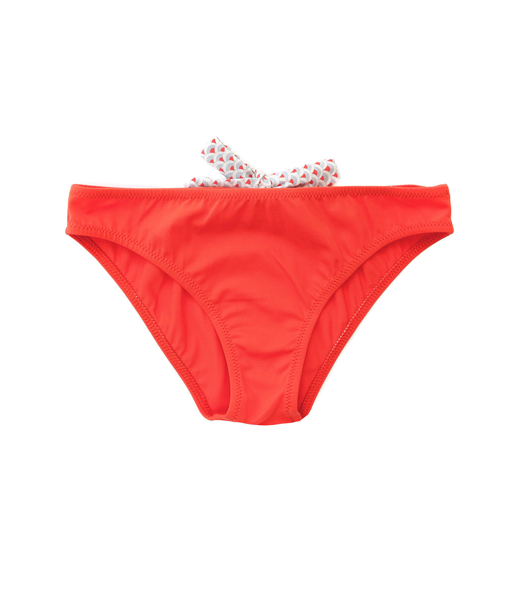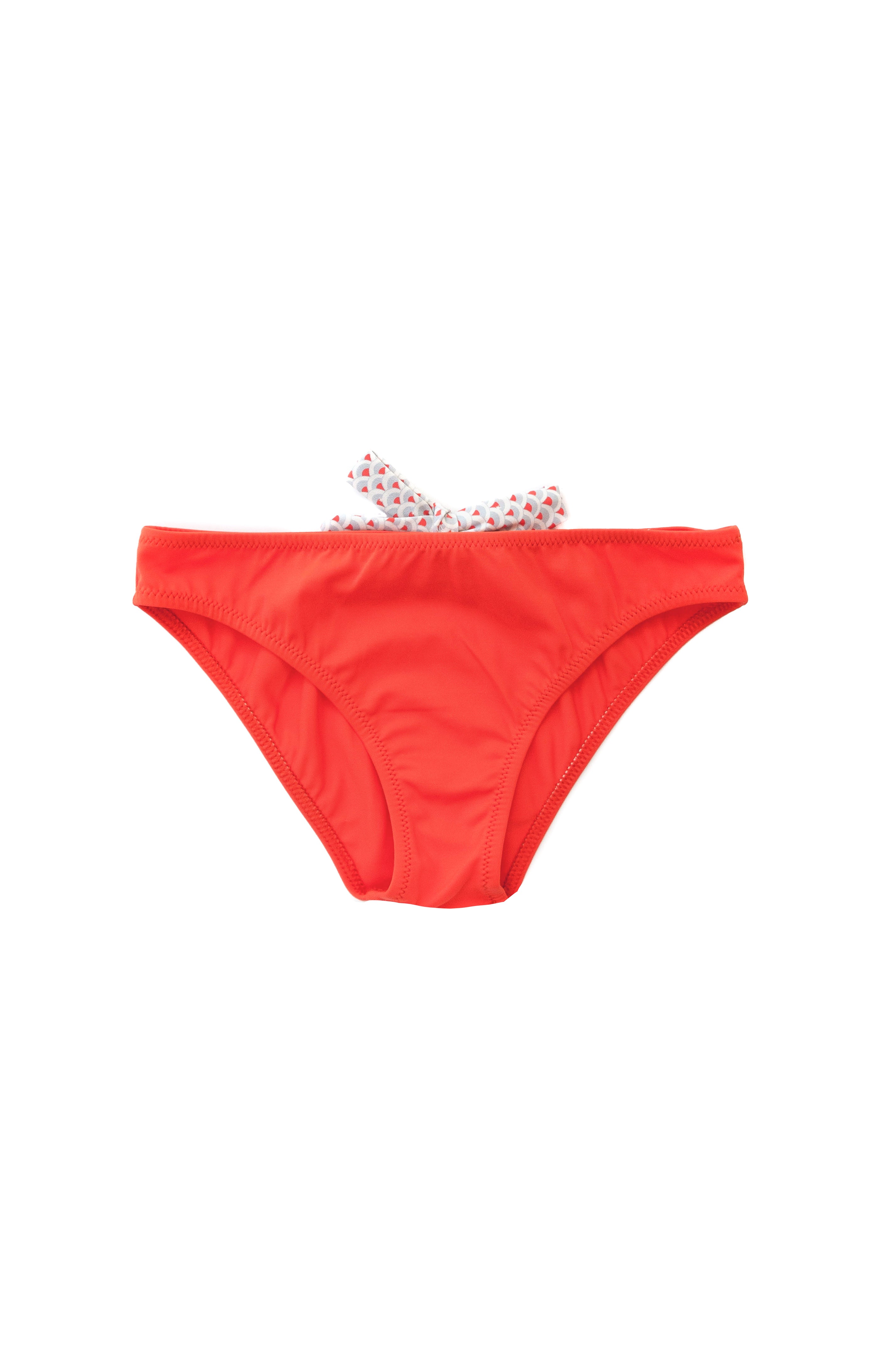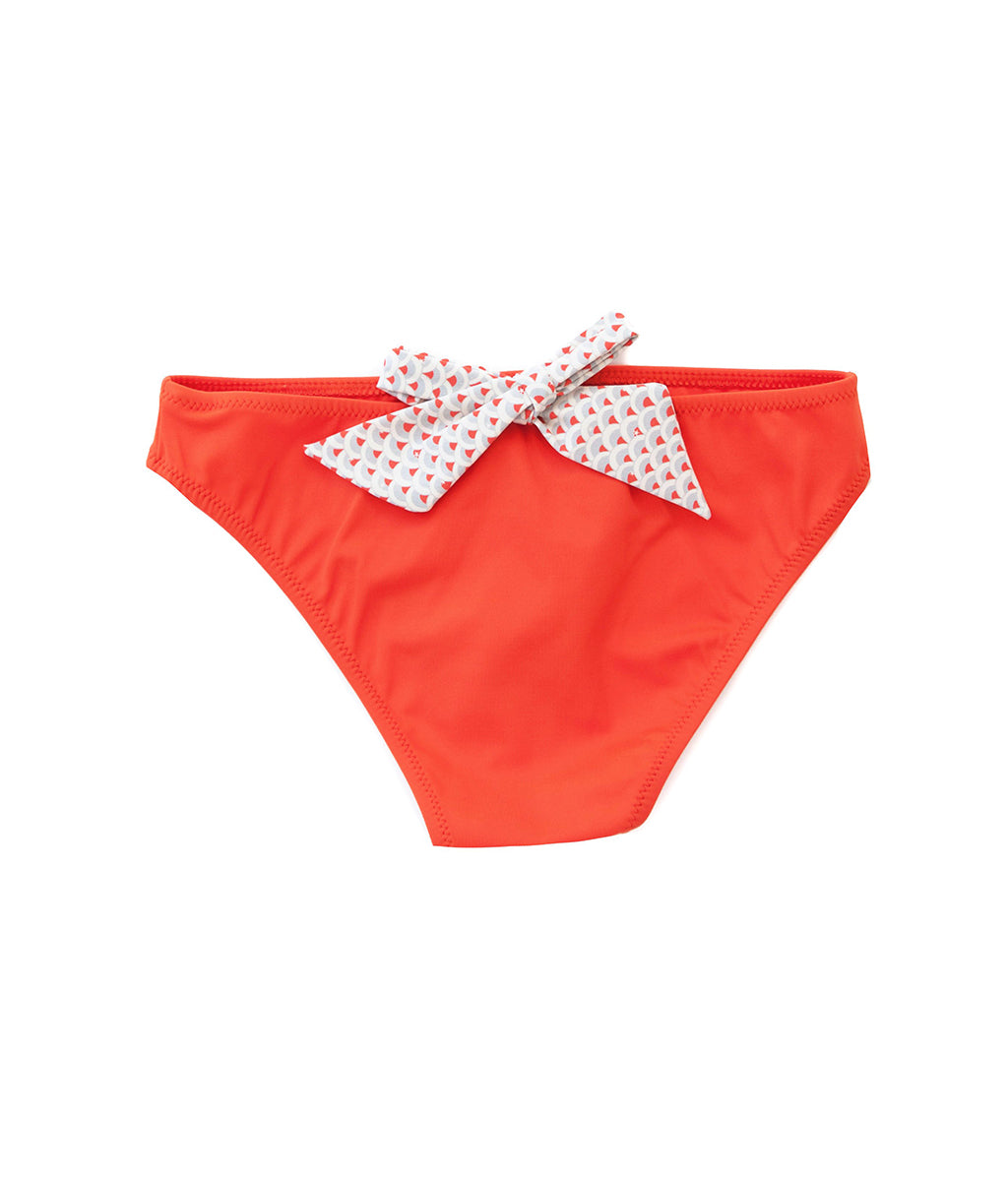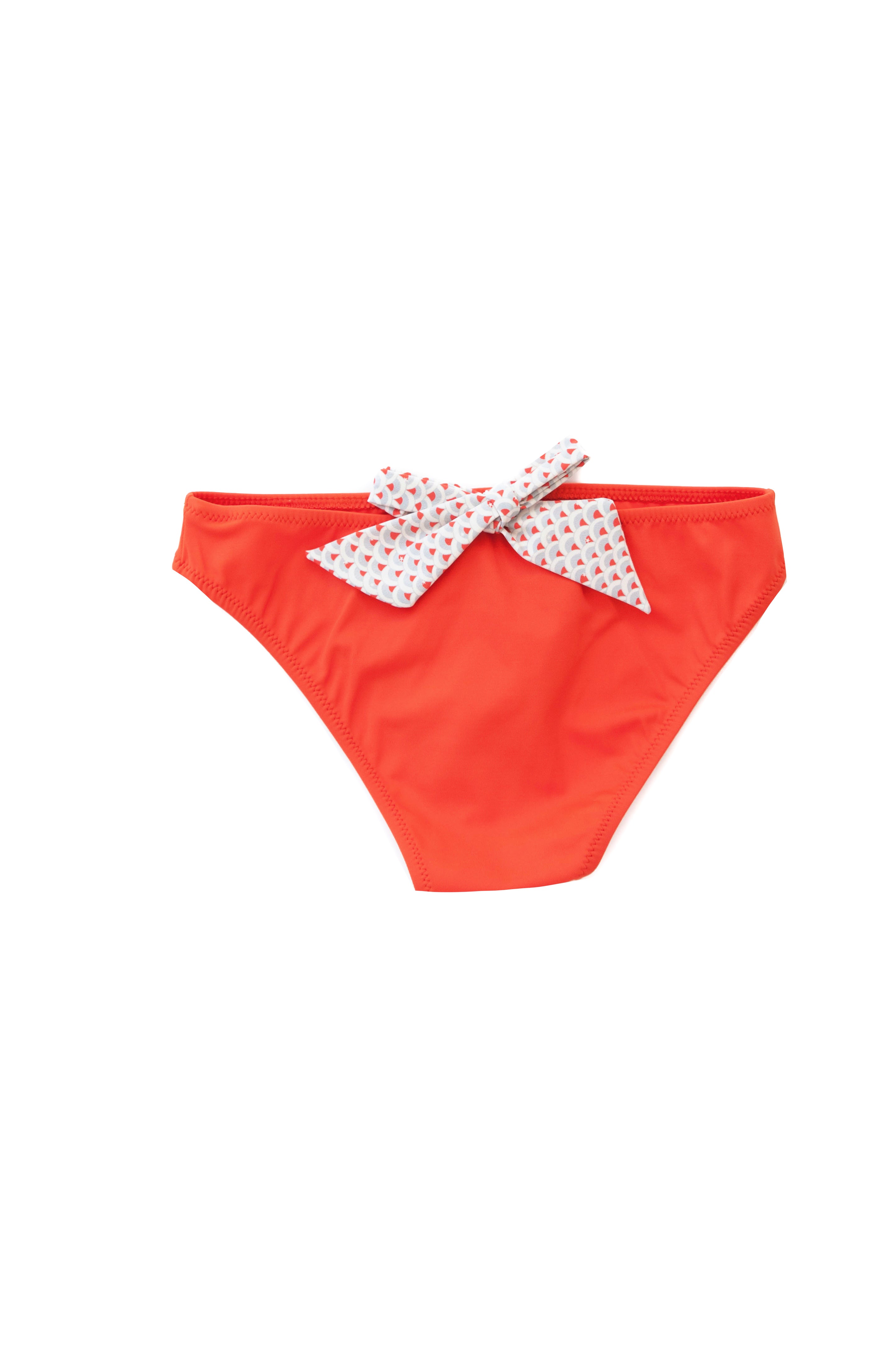 Practical yet adorable our Isabella swim pant in mandarinred has a soft ribbon at the back in cloud grey print which adds a touch of Italian elegance.