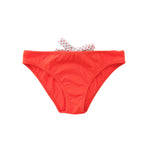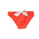 Practical yet adorable our Isabella swim pant in mandarinred has a soft ribbon at the back in cloud grey print which adds a touch of Italian elegance.
