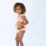 Introducing our new girl bikini with romantic and thoughtful details in our classic peachpink hue.