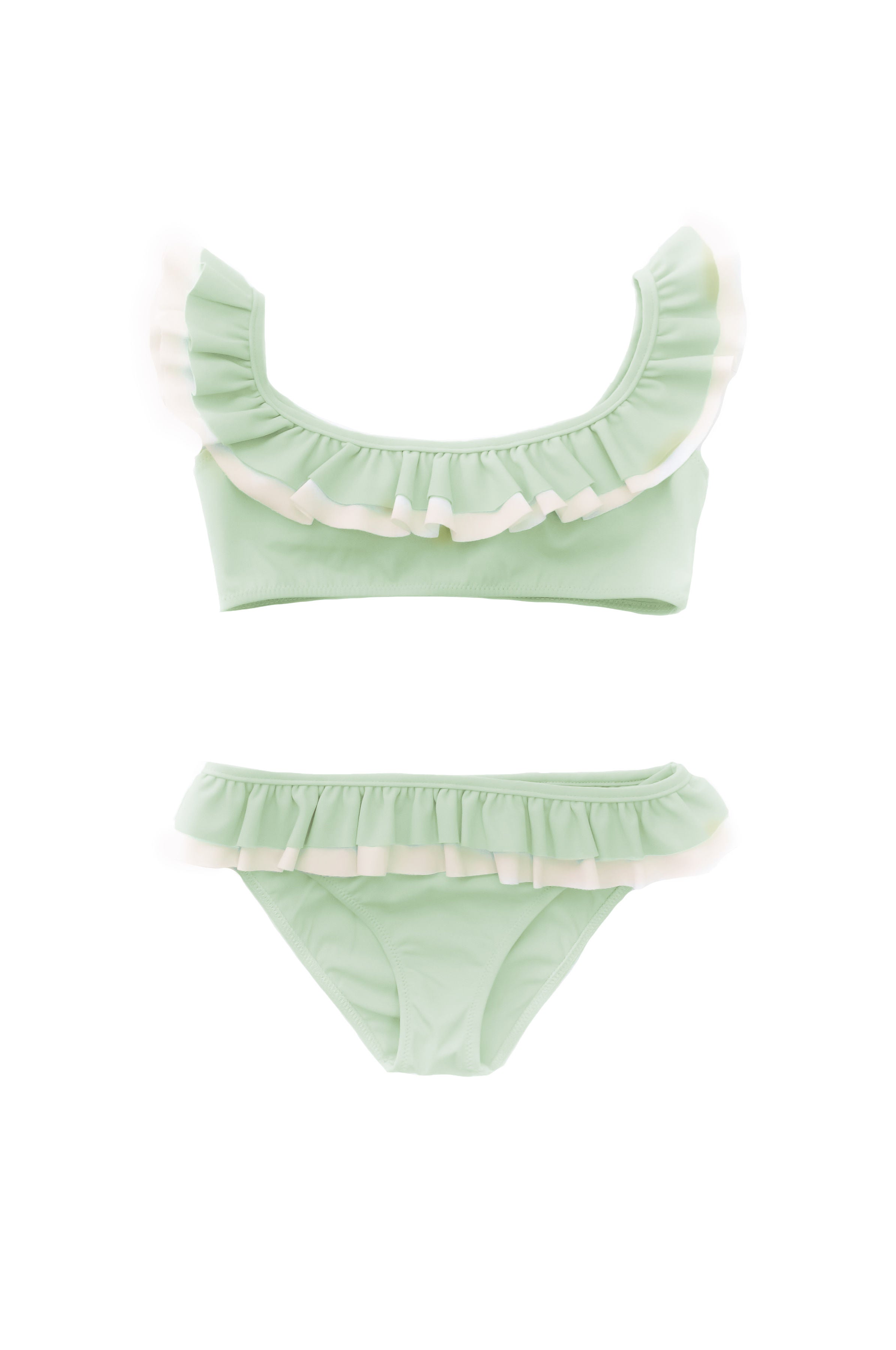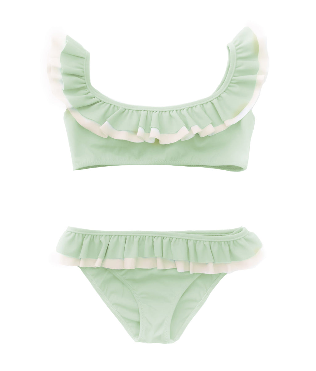 Introducing our new girl bikini with romantic and thoughtful details in our classic mint hue.