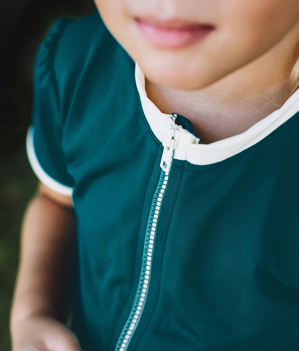 Designed to ensure UPF50+ protection from sun's harmful rays, our new ROSE rashguard in Teal is tylish and practical too.